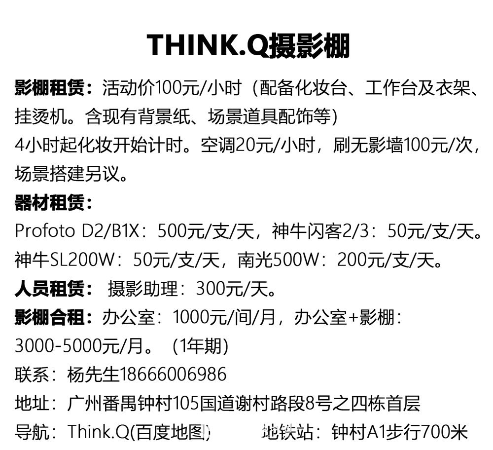 番禺钟村THINK.Q影棚