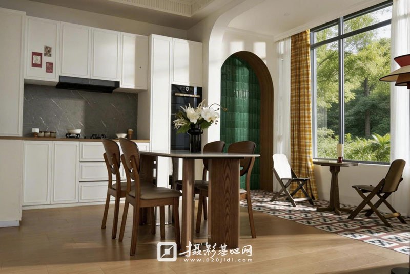 美式田地别墅,家居场景,多巴胺空间,开放式厨房