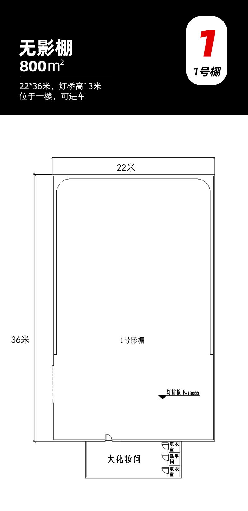 此影视棚位于广州海珠区南洲路,内设专业电影棚有1号影棚800平方米,2号影棚1000平方米,3号影棚1500平方米,5号特技棚220平方米,影棚内硬件设施齐全,安装中央空调、搭建13米高的标准影业天桥、安装监控系统、网络无线WIFI、齐备的灯光器材,每个影棚独立配套完善,配备精致的化妆间和独立卫生间、男女主角VIP化妆间,服装间、休息室、会议室和影棚休息区。园区配置大型的置景车间和停车场,并在办公区设立国际标准录音棚,影视后期工作室,特技制作工作室,多功能会议室,期待您来进驻!除了影棚外,艺影小洲产业园还配备灯光器材租赁部,配置专业电影、广告灯光器材。