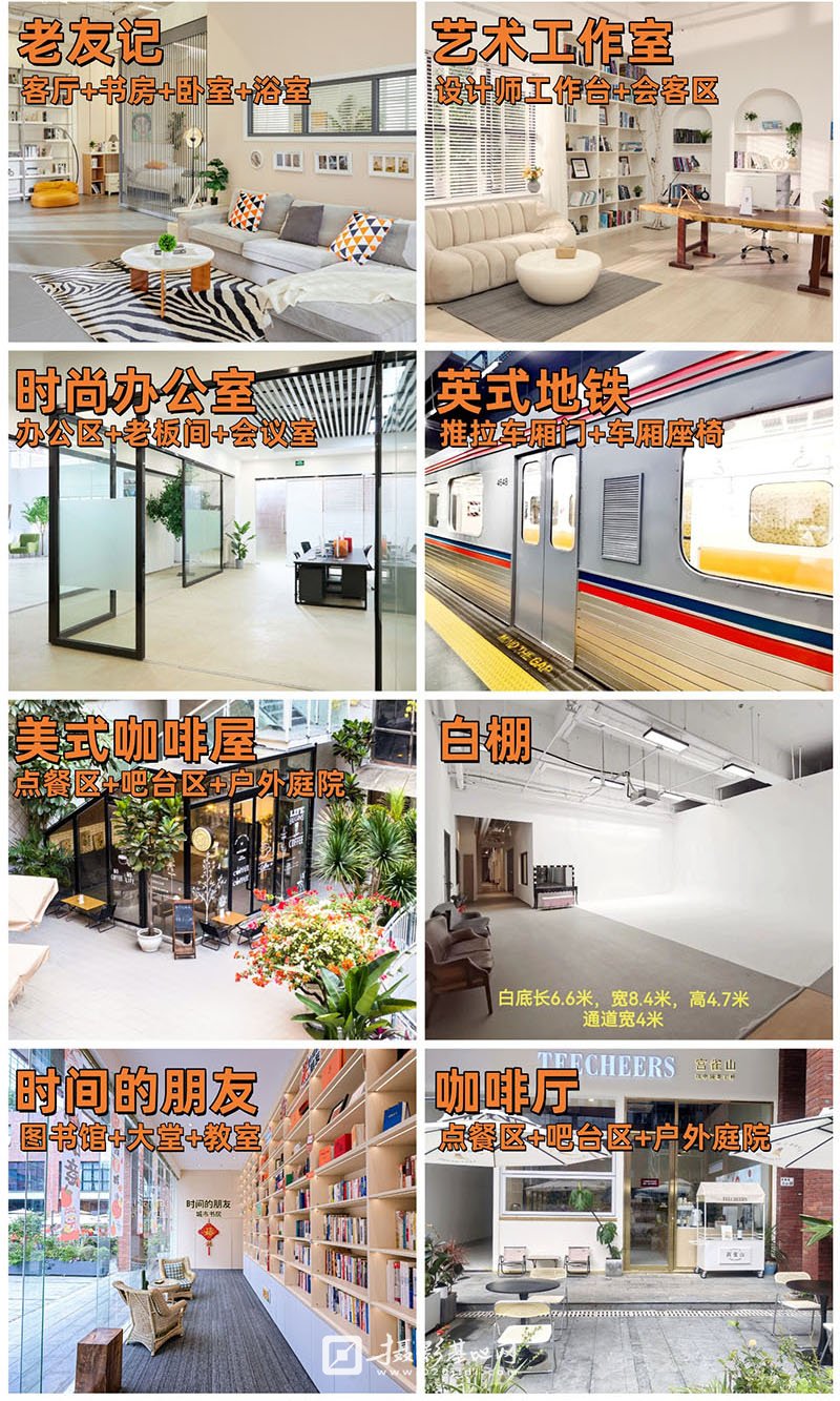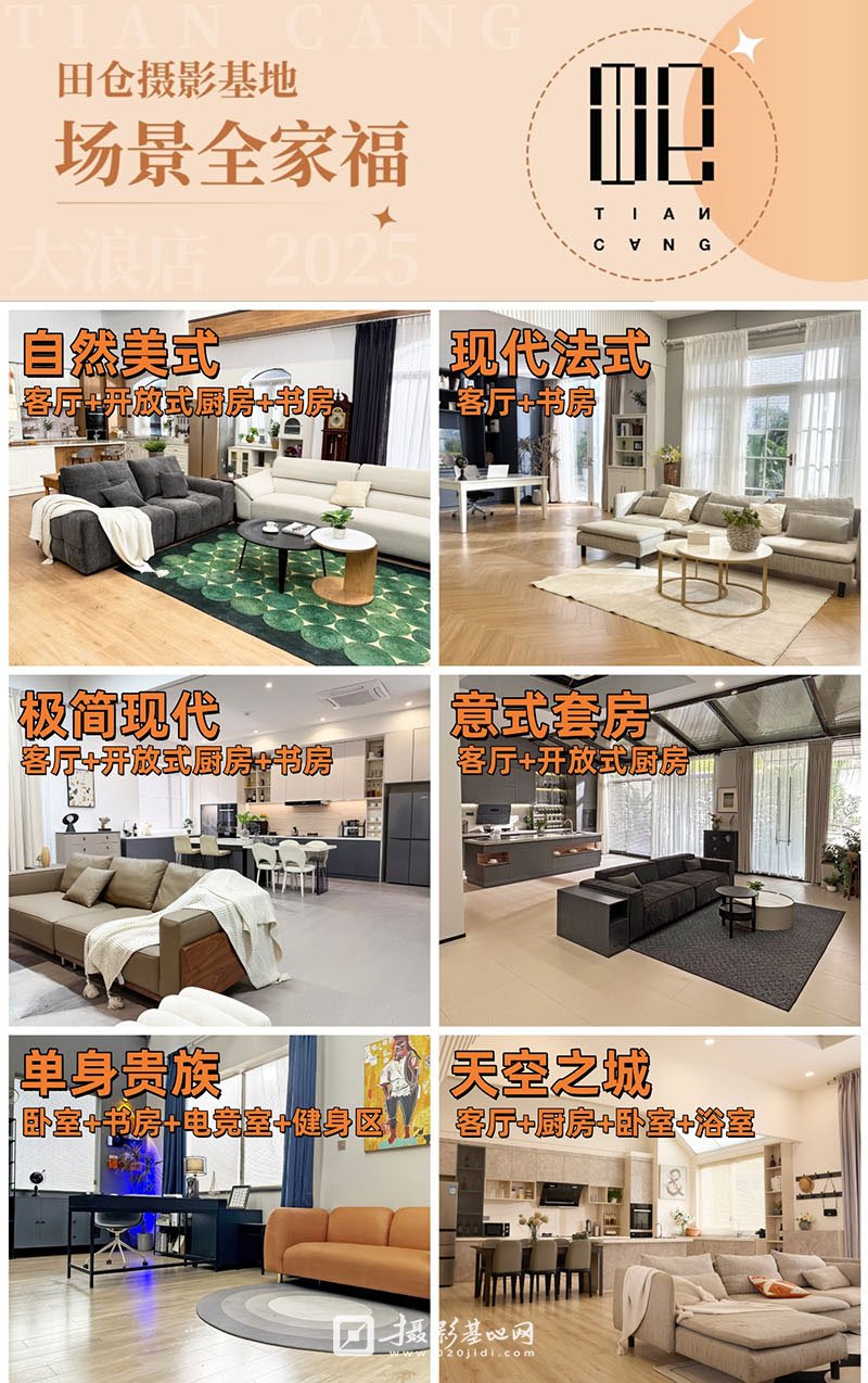 占地5000平米的田仓影视基地在时尚气息环绕之地等待各位摄影师的到临!田仓的成立填补了深圳摄影基地的空白,聚万象于田仓,基地涵盖LOFT、欧式、中式、超市风、工业风等主流风格实景。区别于一贯的拍摄基地,田仓追求独特高端兼并实用的设计理念,配备高标准硬装软装,宽敞的拍摄面积,巧妙的空间布局。另提供400平无影空棚出租,及顶级闪光灯出租业务。
